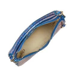 Featured in Deep Azure Melbourne, a saturated, dynamic blue. This deep, dazzling blue is accented with a copper metallic shimmer that brings eye-catching shine to warmer weather. Made with genuine croc-embossed leather.