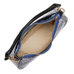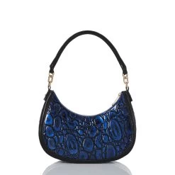 Featured in Kyanite Curie, a dynamic new blue. This collection combines a liquid patent Kyanite croc with a subtle eye-catching metallic and a black Italian smooth. The multi-dimensional blend of color and texture brings boldness to the season. Made with genuine leather.
