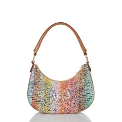 Featured in Multi Bandana, a classic bandana print with a Brahmin twist. The Americana-inspired design is infused with a joyful array of color and navy blue accents. This playful print adds a whimsical energy to the season for every summer adventure. Made with genuine croc-embossed leather.