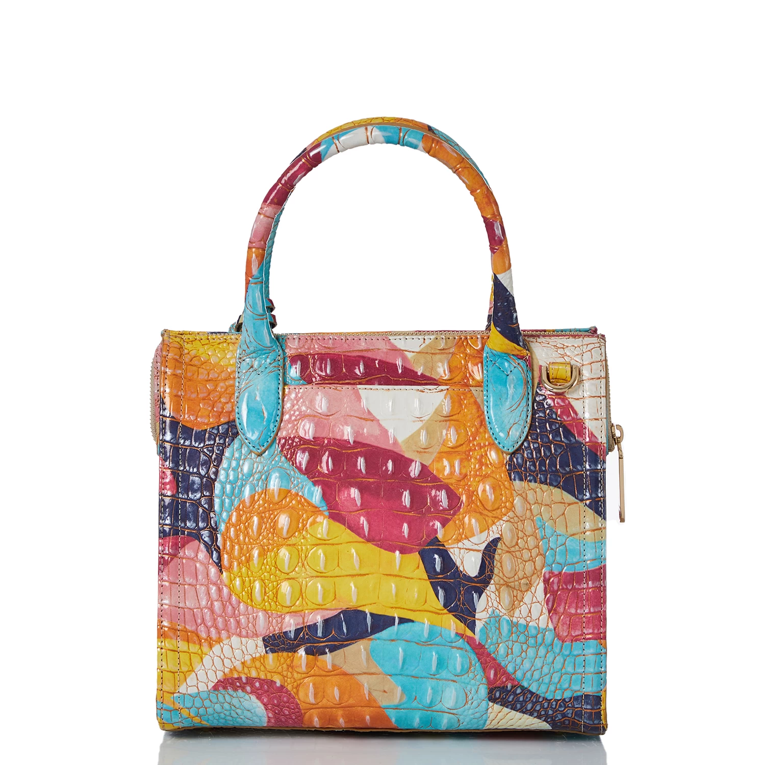 Featured in Expression Melbourne, an abstract expression of color. This bold, graphic print was inspired by the feel-good energy of tropical prints. The mix of warm, saturated colors embraces the energy of the season and the hints of neutral and blue make this versatile and easy to style. Made with genuine croc-embossed leather.