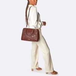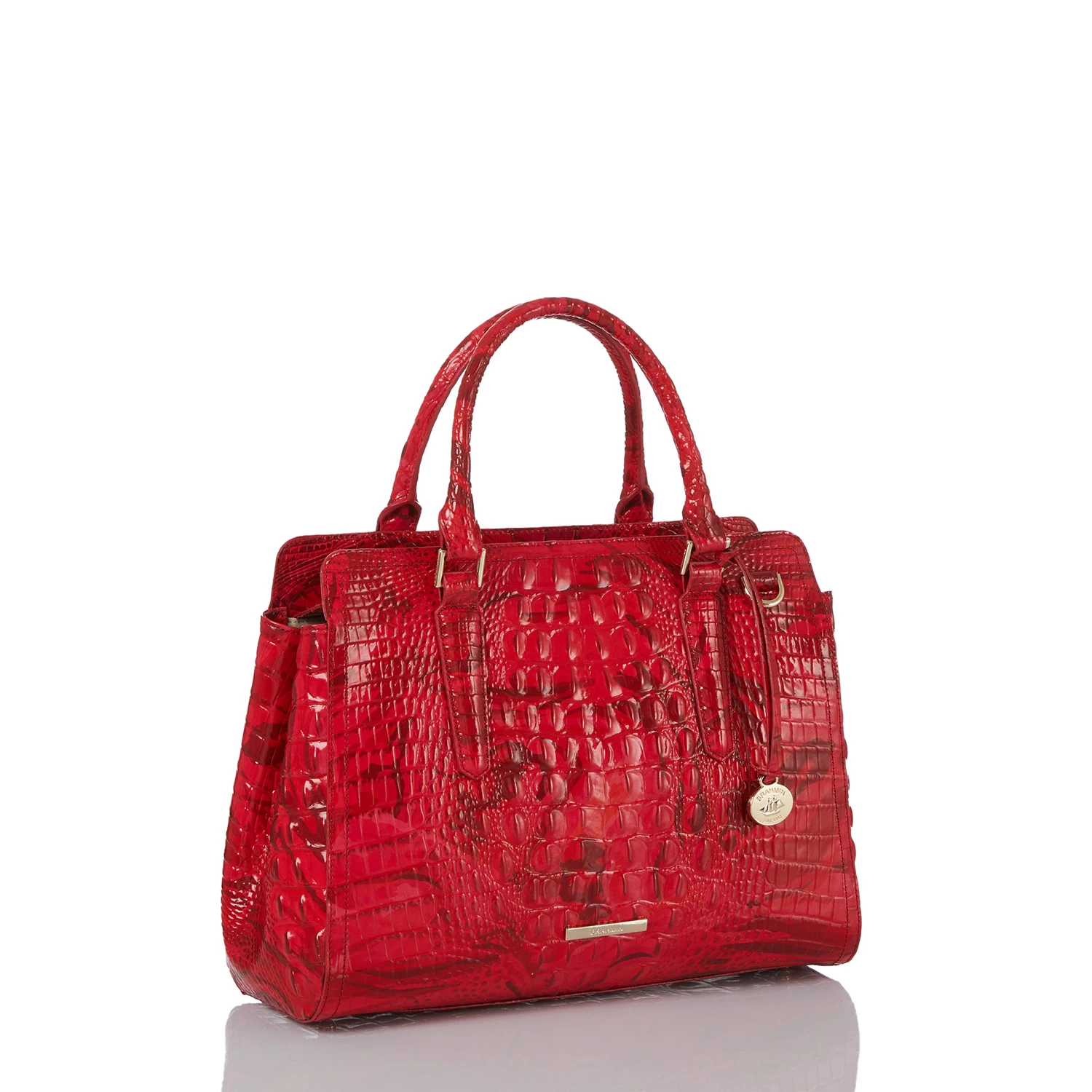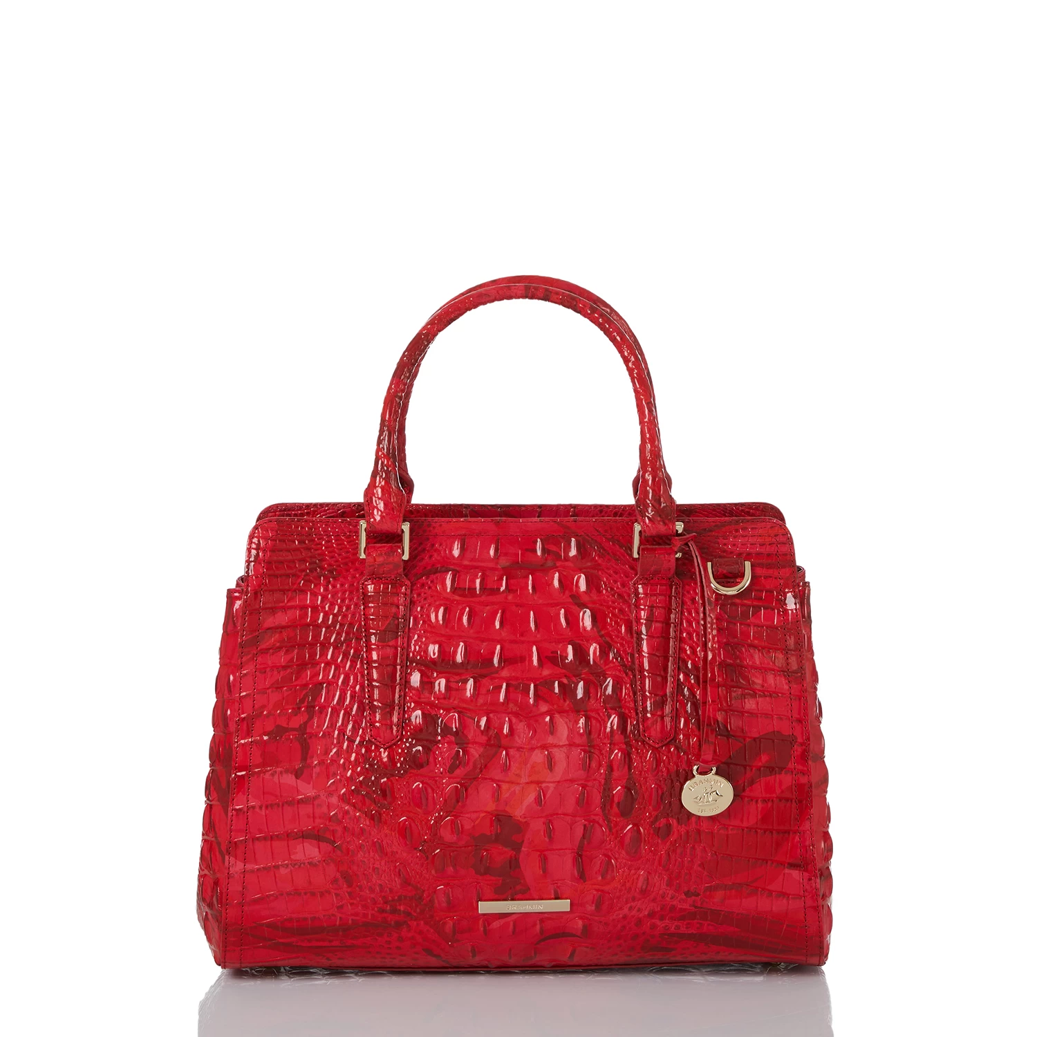 Featured in Red Flare Melbourne, a vibrant high-shine red that will make a striking statement this season. This dynamic print is infused with varying shades of red; from vibrant and warm to darker, richer variations, this combination brings a bold statement to warmer weather. Made with genuine croc-embossed leather.