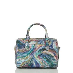 Featured in Elope Melbourne, a creative combination of color designed to ignite the imagination. Enter a world of whimsy with this playful print that has iridescent shine bringing a glow to the season. Made with genuine croc-embossed leather.