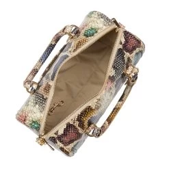 Featured Multi Caloosa, an Italian multi-colored snake with pops of neutral for versatility. The vibrance and energy of the colors is well-balanced with the soft, neutral base. Carefully placed trapunto detailing adds luxury to the look. Made with genuine leather.