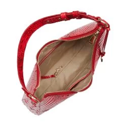 Featured in Red Flare Melbourne, a vibrant high-shine red that will make a striking statement this season. This dynamic print is infused with varying shades of red; from vibrant and warm to darker, richer variations, this combination brings a bold statement to warmer weather. Made with genuine croc-embossed leather.