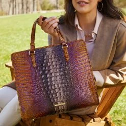 Featured in Crown Ombre Melbourne, pewter and charcoal transition into a radiant orange. This collection features glimmering touches of purple metallic that capture the season. Made with genuine croc-embossed leather.