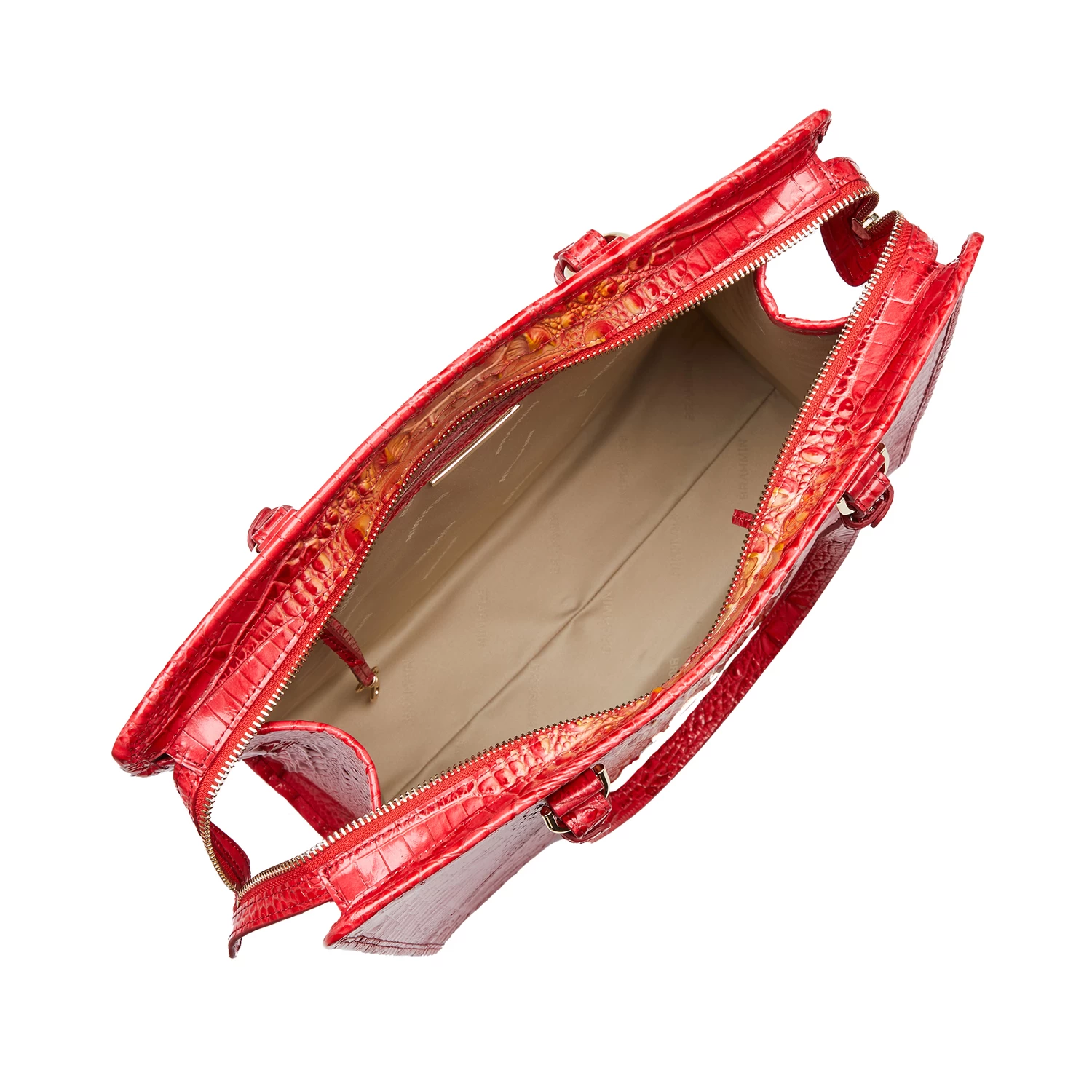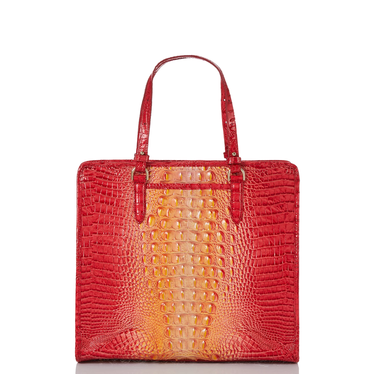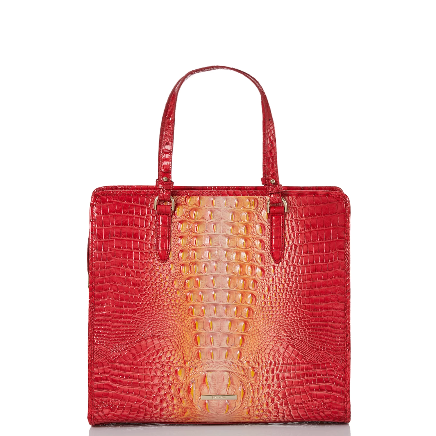 Featured in Infusion Ombre Melbourne, an energetic ombre bursting with freshness. Inspired by the zest and vibrance of fresh grapefruits, this transitions from a light, feminine orange into a deep strawberry red. The combination of color gives depth and dimension while the pearlized finish lends luxury to the look. Made with genuine croc-embossed leather.